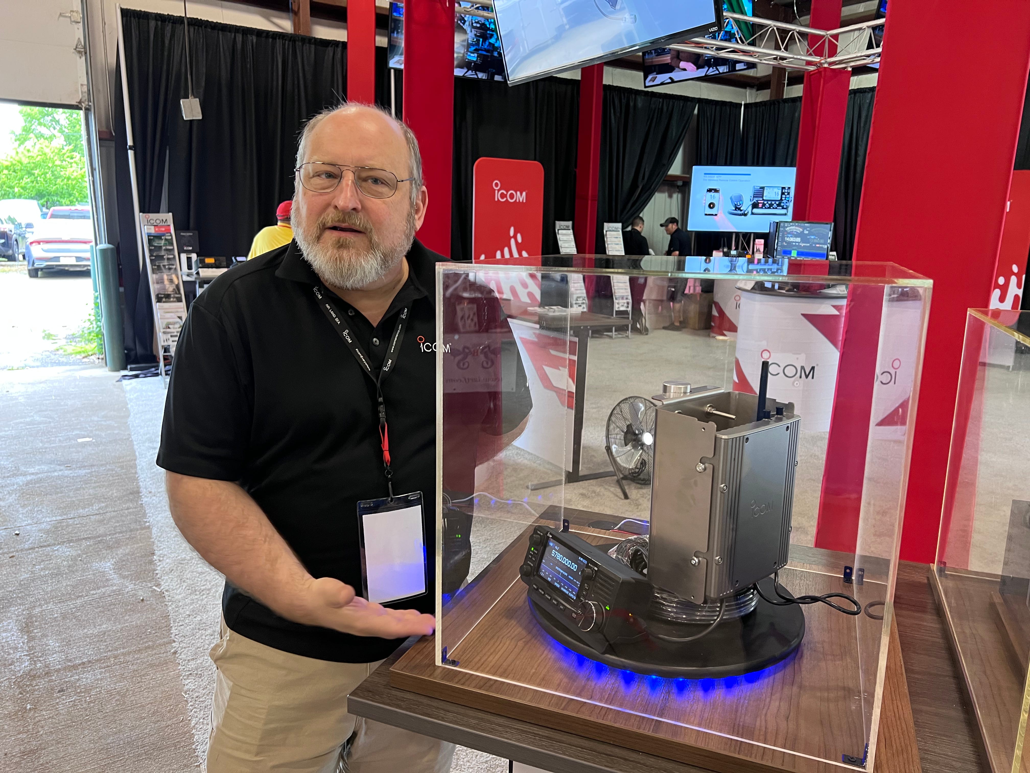 A lot of Hamvention attendees were confused that Icom used a (modified) Icom IC-705 as the control head / power supply for this system, and thought that the unit was an IC-705 and the tower unit was a transverter, rather than a 2.4 GHz / 5.x GHz radio.