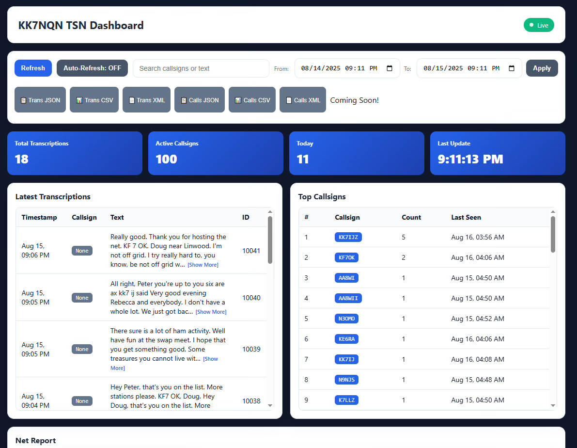 When I first emailed Steve N8GNJ about my early experiment with an AllStar-linked repeater that automatically transcribes traffic, it was running on the kk7nqn.org domain with fairly limited capability.