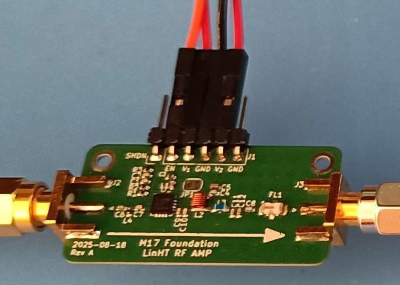 We designed a universal amplifier block for the 70cm band, that can be used with virtually any mode out there (including M17, of course). Thanks to GRF5604’s good linearity, high PAPR modulations, including SSB, QAM, and OFDM, shouldn’t cause much trouble.