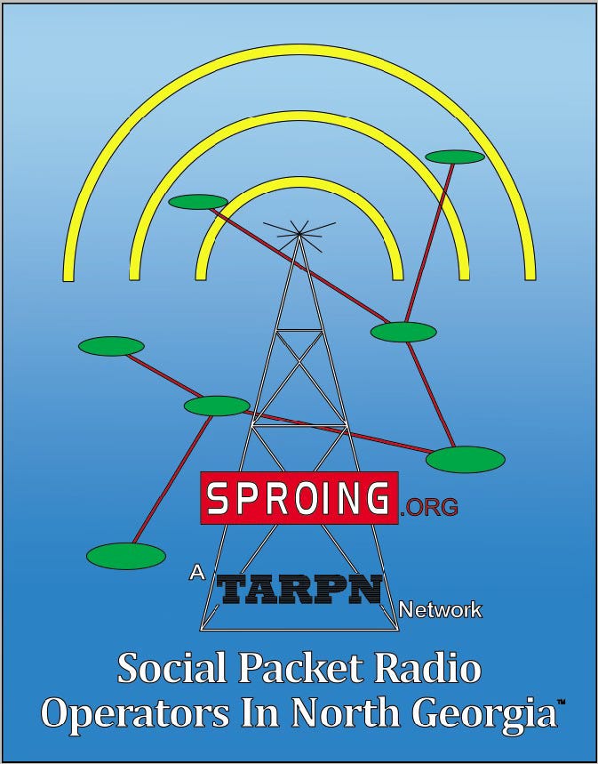 You’ve seen TARPN (Terrestrial Amateur Radio Packet Network) mentioned here before, and you can get all the details at tarpn.net, but the short point is that I’m working to build a TARPN here in Atlanta [Georgia, USA] - Social Packet Radio Operators in North Georgia - SPROING. After a year of trying and some significant setbacks it’s still a slog, yet slowly but surely we’re gaining traction.